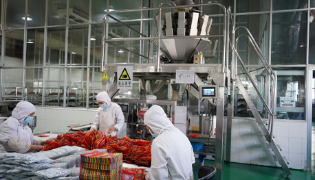 炒制牛肉制品的組合烘干箱、給袋式真空包裝機(jī)、機(jī)器人碼垛機(jī)等一系列具有開(kāi)創(chuàng)性的設(shè)備